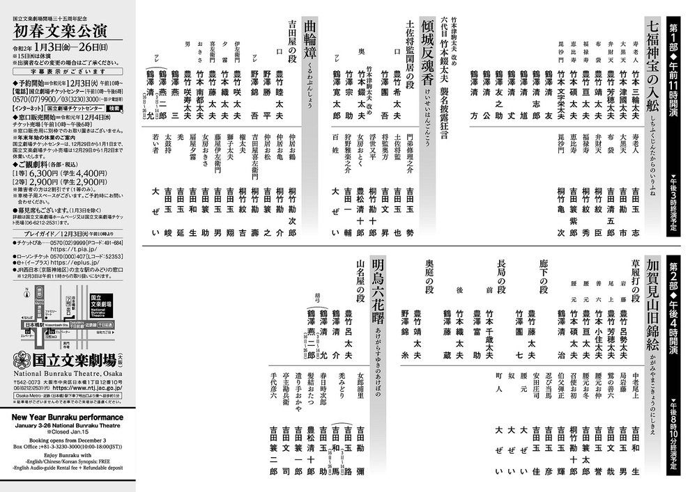 | お問い合わせ | 国立文楽劇場(10時~18時) |