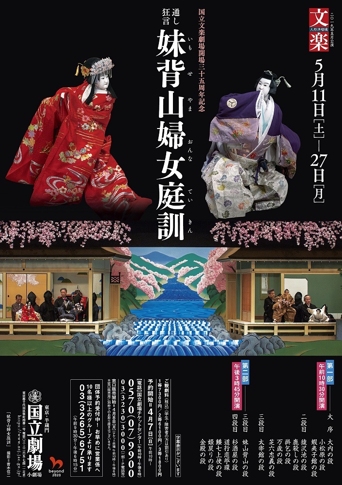 | 演目内容 | ■第1部 通し狂言 妹背山婦女庭訓(いもせやまおんなていきん) 大序 ・大内の段 ・小松原の段 ・蝦夷子館の段 二段目 ・猿沢池の段 ・鹿殺しの段 ・掛乞の段 ・万歳の段 ・芝六忠義の段 三段目 ・太宰館の段 ■第2部 三段目 ・妹山背山の段 四段目 ・杉酒屋の段 ・道行恋苧環(橘姫) ・鱶七上使の段 ・姫戻りの段 ・金殿の段 |